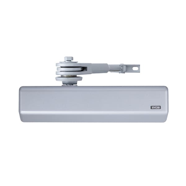 Продукція японського виробника RYOBI по праву визнана в усьому світі завдяки своїй відмінній якості. Дана модель RYOBI DS-3550 BC/DA STD HO встановлюється накладним монтажем на дверні полотна масою до 100 кг та шириною до 1250 мм. Гідравлічний привід забезпечує чітку роботу дотягувача з кутом відкривання до 180°. Безпосередньо на корпусі є можливість регулювати основну швидкість в межах 180°-10°, швидкість захлопування - 10°-0° та гальмо відчинення - 75°-180°. Дана функція захищає дверне полотно від удару об стіну та виривання тяги дотягувача. Також фішкою цієї моделі є функція уповільнення зачинення. Це зручно, коли проходять багато людей чи потрібно занести вантаж. Загалом завдяки таким можливостям регулювання можна добитись максимально індивідуального налаштування зачинення дверей. Особливістю дотягувачів RYOBI є спеціальне термоконстантне масло. Воно забезпечує стабільну роботу навіть при великому перепаді температур. Взагалі робоча температура варіюється в діапазоні від -20°С до +45°С. RYOBI DS-3550 BC/DA STD HO може бути встановлений на ліво і правосторонні двері з можливістю відкривання як всередину так і назовні. В даній комплектації присутня стандартна тяга з фіксацією дверей у відчиненому стані. Це дає можливість залишити двері відчиненими для провітрювання чи для зручності користування у комерційних приміщеннях. В сірому кольорі найкраще буде доповнювати двері подібних відтінків для того, щоб максимально уникнути контрастів та не привертати зайвої уваги.