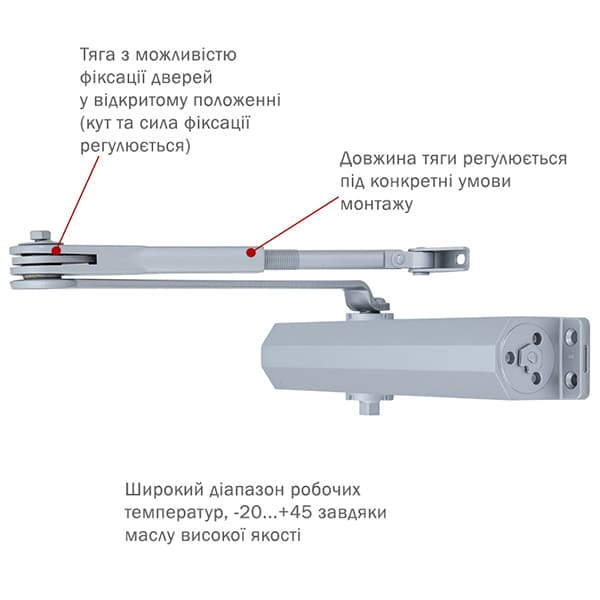 | Тип тяги дотягувача | стандартна з фіксацією | |