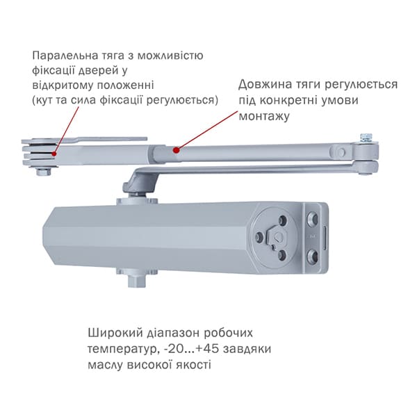 | Тип тяги дотягувача | паралельна з фіксацією | |