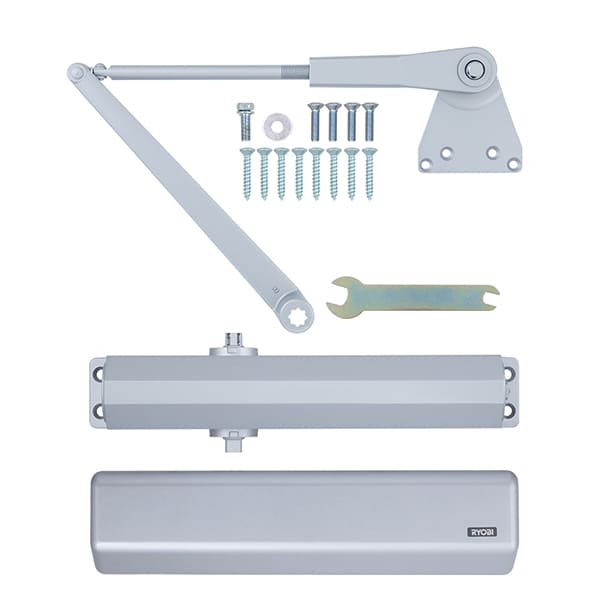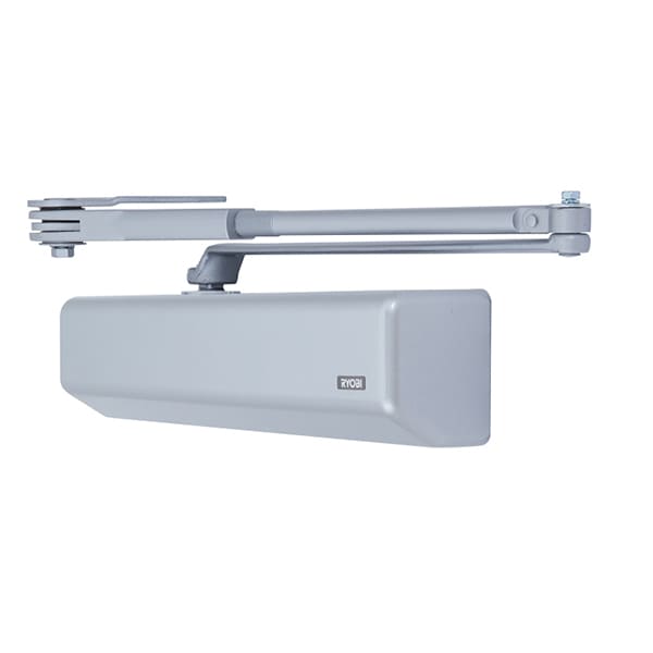 Продукція японського виробника RYOBI по праву визнана в усьому світі завдяки своїй відмінній якості. Дана модель RYOBI DS-3550P BC/DA PRL HO встановлюється накладним монтажем на промислові дверні полотна масою до 100 кг та шириною до 1250 мм. Гідравлічний привід забезпечує чітку роботу дотягувача з кутом відкривання до 180°. Безпосередньо на корпусі є можливість регулювати основну швидкість в межах 180°-10°, швидкість захлопування - 10°-0° та гальмо відчинення - 75°-180°. Дана функція захищає дверне полотно від удару об стіну та виривання тяги дотягувача. Також фішкою цієї моделі є функція уповільнення зачинення. Це зручно, коли проходять багато людей чи потрібно занести вантаж. Завдяки цьому можна досягнути індивідуального налаштування зачинення дверей так як Вам потрібно. Особливістю дотягувачів RYOBI є спеціальне термоконстантне масло. Воно забезпечує стабільну роботу навіть при великому перепаді температур. Взагалі робоча температура варіюється в діапазоні від -20 до +45°С. RYOBI DS-3550P BC/DA PRL HO може бути встановлений на ліво і правосторонні двері з можливістю відкривання як всередину так і назовні. В даній комплектації присутня паралельна тяга з фіксацією дверного полотна у відкритому положенні. Це дає можливість зберегти дизайн приміщення там, де потрібно, щоб дотягувач не виділявся чи взагалі було можливе його встановлення в умовах обмеженого простору. Фіксація ж дасть змогу залишити двері відчиненими для провітрювання чи для зручності користування у комерційних приміщеннях. В сірому кольорі найкраще буде доповнювати двері подібних відтінків для того, щоб максимально уникнути контрастів та не привертати зайвої уваги.