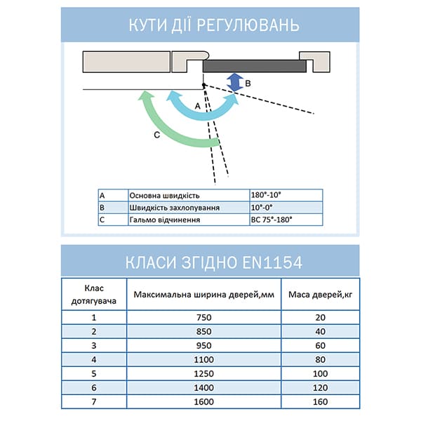 Після чого потрібно визначити ширину і вагу дверного полотна, з яким він буде працювати, та де він буде встановлений - на вулиці чи в приміщенні. Це є важливим при виборі. Також потрібно розуміти яка буде прохідність людей (іншими словами - як часто двері будуть відчинятись). Зрозуміло що чим більші ці значення, тим сильніший і надійніший дотягувач Вам потрібен.
