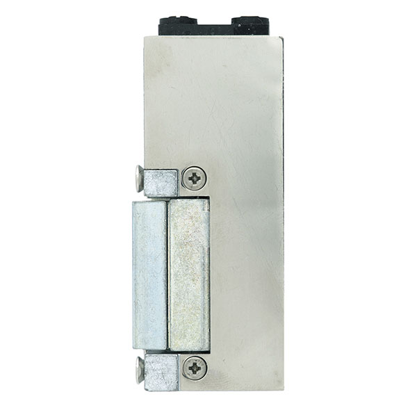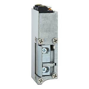 Електрозащіпка працює в нормально замкненому стані. Це означає, що вона замкнена без живлення, а відмикання відбувається поданням напруги. Після короткочасної подачі струму защіпка залишається відчиненою до відкриття-закриття дверей (функція механічної пам’яті). На корпусі присутній спеціальний важіль, який переводить електрозащіпку в постійно відчинений стан.
