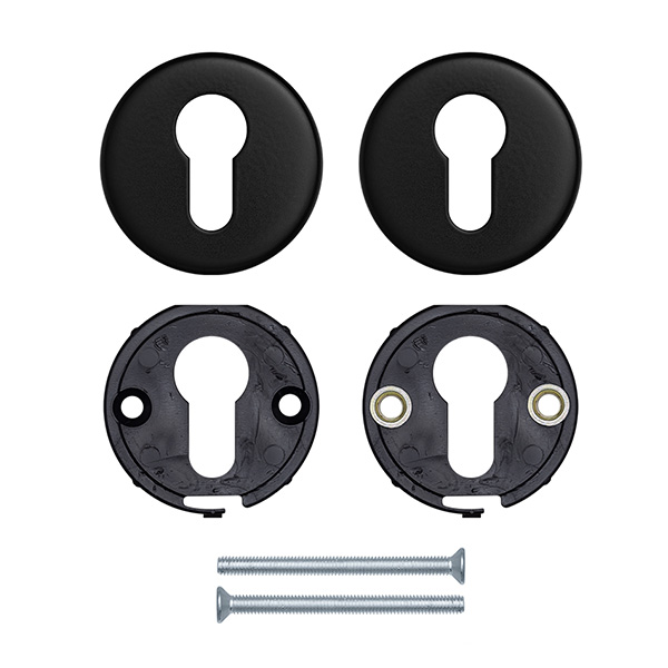 Накладки чеської торгової марки ROSTEX SNH55 виготовлені із цинкового сплаву. Призначені для використання в якості декоративного елементу на дверях в тому випадку, якщо на них встановлена серцевина. Сумісні із ручками ROSTEX з круглою розетою в чорному кольорі, довершуючи стильний вигляд дверей. Складаються із двох половинок на обидві сторони дверей. Монтаж не потребує зайвих зусиль.