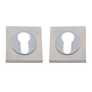 Накладки турецької торгової марки SIBA виготовлені із цинкового сплаву ZAMAK. Призначені для використання в якості декоративного елементу на дверях в тому випадку, якщо на них встановлена серцевина. Сумісні із ручками SIBA з квадратною розетою в кольорі “матовий нікель/хром”. Складаються із двох половинок на обидві сторони дверей. Монтаж не потребує зайвих зусиль.