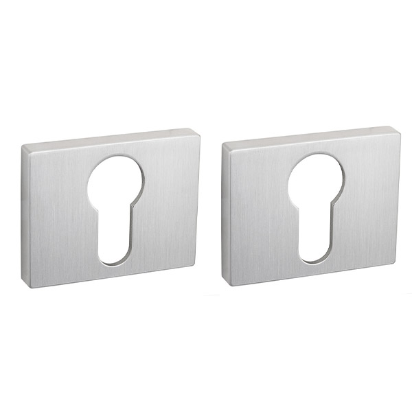 Накладки SIBA з прямокутною розетою використовуються в якості декоративного елементу маскування отворів під серцевину та для надання естетичного вигляду дверному полотну. Підбираються відповідно до обраних ручок SIBA в кольорі “матовий хром”. Складаються із двох половинок на обидві сторони дверей. Виготовлені із цинкового сплаву. В монтажі прості.