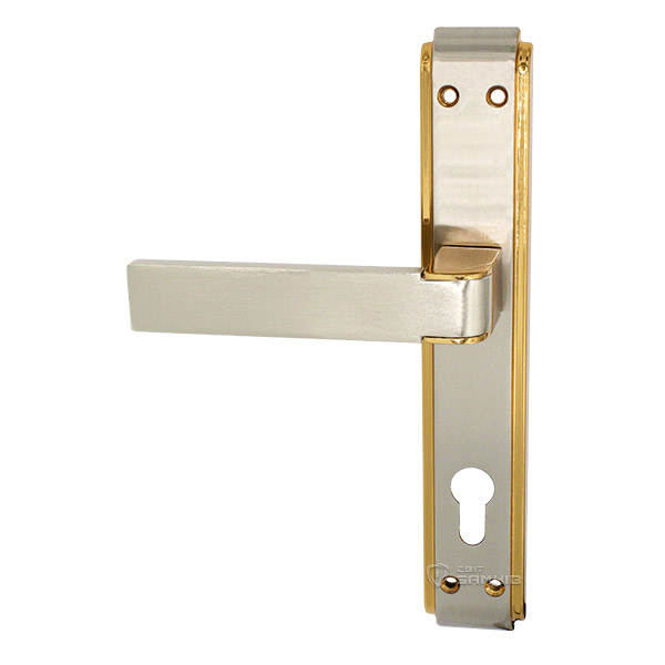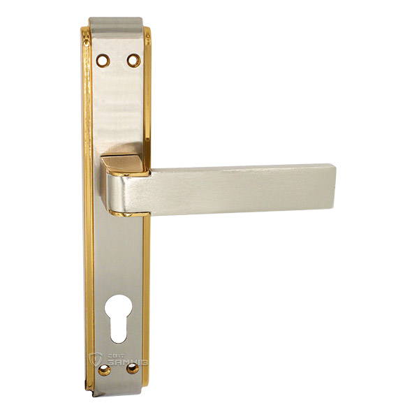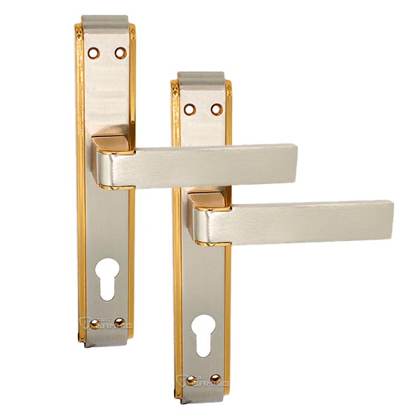 Суцільнолиті із цинкового сплаву ручки на планці турецького виробництва OZCANLAR. Дана серія ручок характеризується високою надійністю та довговічністю. Переважно використовуються для встановлення на вхідні дерев’яні або металеві двері, хоча за потреби можуть встановлюватися і на міжкімнатні двері. Планка також виготовлена із цинкового сплаву, вона міцна та стійка до корозії. Покриття наноситься методом гальваніки, що забезпечує стійкість кольорового відтінку до стирання протягом 60 місяців. Вдале поєднання кольорів – сатин/золото – чудово доповнить квартиру або будинок в спокійних золотих відтінках. Під час вибору ручки на планці головним технічним критерієм є міжосьова відстань. Вона може бути різною і підбирається виключно під Ваш замок. Дана модель підходить лише для механізмів замка з міжосьовою відстанню 85 мм. Сучасний дизайн в стилі хай-тек гармонійно доповнить масивне металеве дверне полотно з прямими лініями.