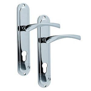 Ручки на планці KEDR з оригінальним дизайном в хромованому кольорі чудово довершать загальний образ світлих дверей в класичному чи модерновому стилі. Встановлюються на металеві або дерев’яні вхідні двері, які зачиняються серцевиною. Міжосьова відстань складає 85 мм. Це основний критерій в процесі вибору такого типу дверних ручок. Конструктивно вони виконані із алюмінієвого сплаву. Через це стійкі до зносу та деформації поверхні. Покриті гальванічним покриттям, яке захищає від дрібних механічних пошкоджень. Планка ручки кріпиться до дверного полотна шурупами або стяжними гвинтами. Нажимну частину потрібно міцно зафіксувати спеціальним гвинтом - гужоном. Це важливо, адже кваліфікований монтаж сприяє довгому терміну експлуатації ручок.