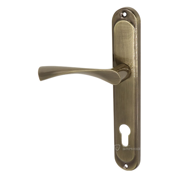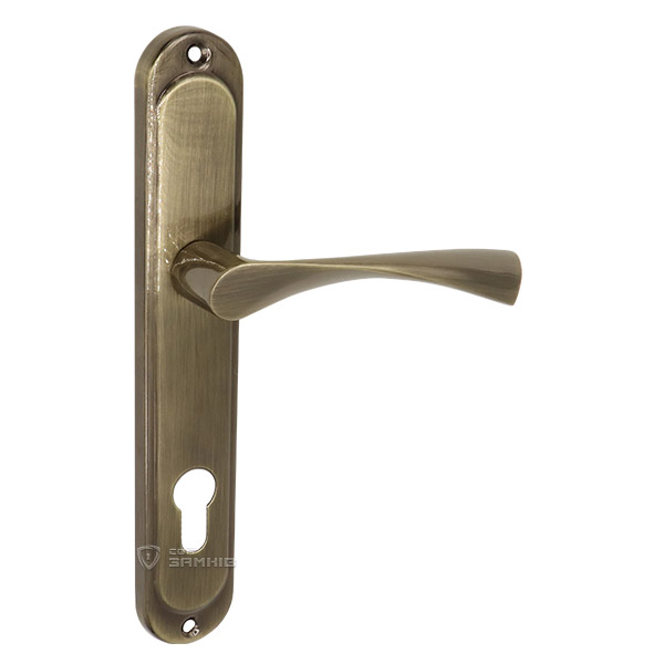 Ручки на планці торгової марки TRION. Ця серія ручок представляє собою практичну дверну фурнітуру за бюджетну ціну. Зазвичай встановлюються на міжкімнатні та вхідні дерев’яні або металеві двері. Виготовляються із цинкового сплаву, його переваги в тому, що він міцний та не боїться навантажень. Нажимна частина ручки зручна та приємна у використані. Планка заокругленої форми, чудово підійде до дверей з плавними лініями. Покриття наноситься методом гальваніки і захищає кольоровий відтінок від подряпин протягом 60 місяців. Приємний бронзовий колір добре підійде для приміщення з кавовими відтінками. Щоб не помилитися при виборі ручок на планці потрібно звернути увагу на міжосьову відстань, вона буває різною і залежить від механізму замка. Ця модель підходить лише для механізмів замка з міжосьовою відстанню 85 мм. Процес монтажу здійснюється за рахунок шурупів або стяжних гвинтів. Під час цього процесу важливо міцно зафіксувати ручки спеціальним гвинтом – гужоном, це збільшить термін експлуатації та дозволить уникнути проблем з провисанням.