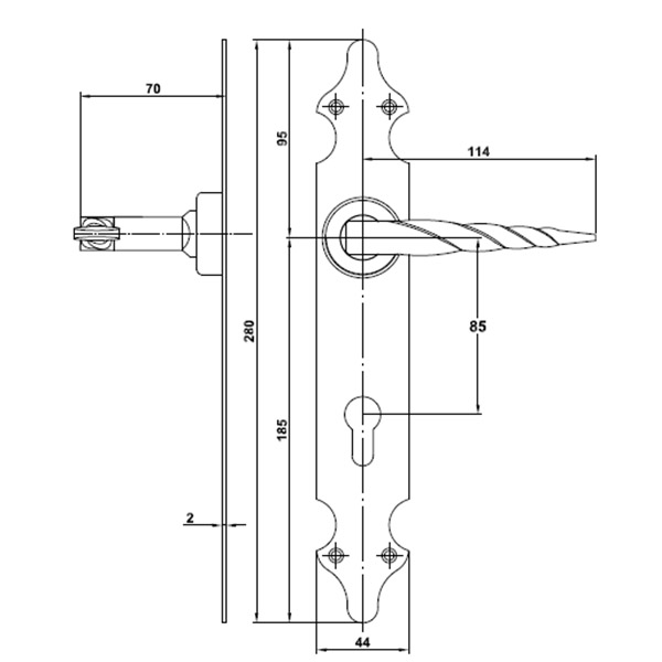 | Тип ручки на планці | під серцевину | |