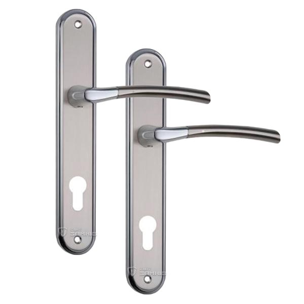Ручки на планці турецького виробництва SIBA. Це надійна та якісна дверна фурнітура за прийнятну ціну. Переважно використовується на вхідних та міжкімнатних дерев’яних або металевих дверях в квартиру чи будинок. Матеріал виготовлення – цинковий сплав. Його перевага в тому, що він міцний та стійкий до навантажень. Довга масивна планка чудово доповнить дверне полотно великих розмірів. Нажимна частина оснащена металевим пружинним механізмом, що забезпечить зручне користування та гарантує понад 200 тисяч натискань. Покриття наноситься методом гальваніки у декілька шарів, завдяки чому кольоровий відтінок буде захищений від стирання та подряпин до 60 місяців. Приємний колір – матовий нікель /хром – чудово буде виглядати в кімнаті або будинку з ніжними світлими відтінками. Вдалий вибір ручки на планці залежить від такого критерію як міжосьова відстань. Ця модель підходить тільки для механізму замка з міжосьовою відстанню 85 мм. Кріплення планки до дверного полотна відбувається за рахунок шурупів або стяжних гвинтів. Під час цього процесу важливо міцно зафіксувати ручки спеціальним гвинтом – гужоном. Він збільшить термін експлуатації ручок та дозволить уникнути проблем з їх провисанням.