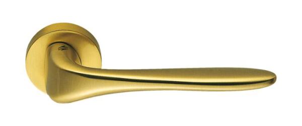Італійські ручки на круглій розеті COLOMBO цінують в усьому світі за практичність та багатство вибору. Досягається це за рахунок використання найкращих матеріалів та залучення відомих дизайнерів. Дана модель виготовлена із латуні. Покрита спеціальним гальванічним покриттям, що забезпечує довговічність та стійкість до дрібних механічних пошкоджень. Ручки в матовому золотому кольорі підійдуть для дверей в приміщеннях з класичним дизайном в темних або кремових тонах з помірною кількістю орнаменту. Завдяки міцній стальній пружині в конструкції, ручка плавно натискається та не почне скрипіти навіть з часом. Монтуються просто і легко.