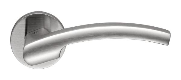 Італійські ручки на круглій розеті COLOMBO цінують в усьому світі за практичність та багатство вибору. Досягається це за рахунок використання найкращих матеріалів та залучення відомих дизайнерів. Дана модель виготовлена із латуні. Покрита спеціальним гальванічним покриттям, що забезпечує довговічність та стійкість до дрібних механічних пошкоджень. Ручки в кольорі “матовий хром” підійдуть для дверних полотен сірої гами із глянцевим покриттям та скляними вставками. Завдяки міцній стальній пружині в конструкції, ручка плавно натискається та не почне скрипіти навіть з часом. Монтуються просто і легко.