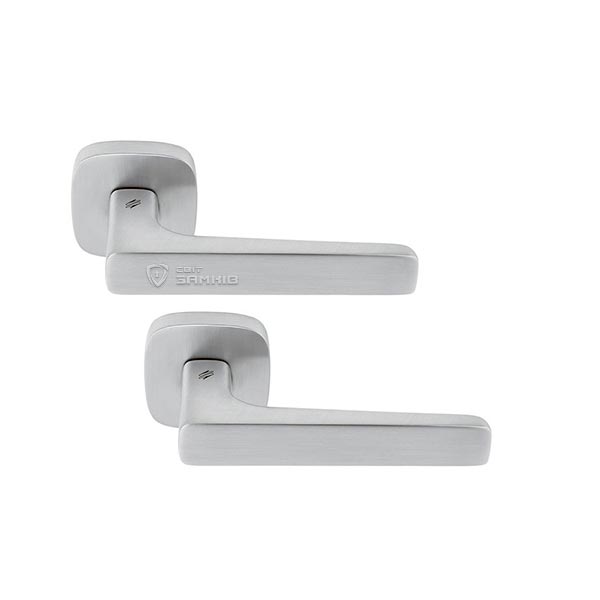 Ручки на квадратній розеті італійської торгової марки COLOMBO вже давно користуються популярністю як за кордоном, так і в Україні. Їхній дизайн розроблений відомою дизайнеркою Лючією Коломбо. Лаконічність строгих ліній ручок в кольорі “матовий хром” застосовують в авангардних інтер'єрах з впливом кубізму або хай-теку. Встановлюють їх як на міжкімнатні, так і на вхідні двері. Самі ручки виконані із латуні та покриті багатошаровим гальванічним покриттям. Це забезпечує захист від подряпин та зносу протягом довгого часу. Зручні в монтажі. А завдяки кріпленню на пластиковій касеті при використанні не провисають.
