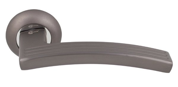 Ручки на розеті торгової марки COMIT виготовлені із алюмінієвого сплаву. Широкий асортимент дозволить підібрати моделі як до класичних так і до сучасних хай-тек дверей. За рахунок металевої пружини нажимна частина легка у користуванні і довго працює. Завдяки гальванічному покриттю кольоровий відтінок має захист від стирання та подряпин до 36 місяців. Вдале поєднання кольорів – хром/титан – чудово доповнить будинок або квартиру в сірих тонах. Дизайн цієї ручки в стилі модерн підкреслить дверні полотна з плавними лініями. За необхідності ручки можна додатково комплектувати воротком чи накладкою, які будуть в стиль і колір цієї моделі. При монтажі варто звернути увагу на «гужон» - це кріпильний елемент ручки до квадрата, який при правильній установці не дасть фурнітурі зламатись довгі роки.