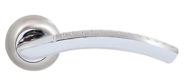 Ручки на розеті торгової марки COMIT виготовлені із алюмінієвого сплаву. Широкий асортимент дозволить підібрати моделі як до класичних так і до сучасних хай-тек дверей. За рахунок металевої пружини нажимна частина легка у користуванні і довго працює. Завдяки гальванічному покриттю кольоровий відтінок має захист від стирання та подряпин до 36 місяців. Колір цієї моделі хром/матовий нікель, чудово підійде для кімнати або приміщень з приємними сірими тонами. Дизайн ручки в стилі модерн підкреслить дверні полотна з плавними лініями. За необхідності ручки можна додатково комплектувати воротком чи накладкою, які будуть в стиль і колір цієї моделі. При монтажі варто звернути увагу на «гужон» - це кріпильний елемент ручки до квадрата, який при правильній установці не дасть фурнітурі зламатись довгі роки.