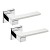 Італійські ручки на розеті DND by MARTINELLI. Ручки цієї торгової марки розробляються в тісній співпраці з відомими італійськими дизайнерами в сфері дверної фурнітури. Матеріал виготовлення – цинковий сплав, що дає змогу встановлювати їх і на міжкімнатні, і на вхідні двері. Ніжний колір – хром/білий – доречно впишеться у кімнату в світлих відтінках. Захист кольорового відтінку від пошкоджень та подряпин забезпечує спеціальний метод багатошарового гальванічного покриття. Завдяки цьому ручки будуть виглядати як нові протягом 60 місяців. Ручки можна встановлювати як на праві так і на ліві двері. Сучасний дизайн в стилі хай-тек чудово підійде для дверного полотна з суворими гострими лініями.