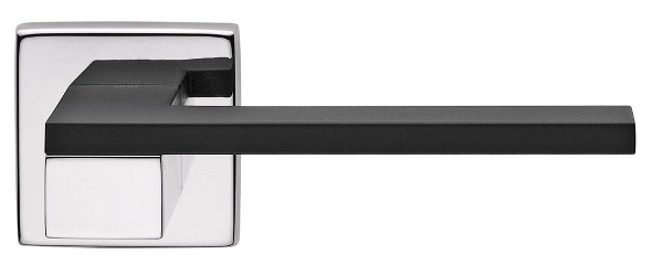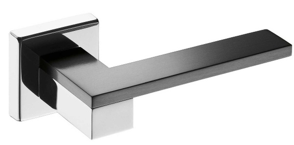 Італійські ручки на розеті DND by MARTINELLI. Ручки цієї торгової марки розробляються в тісній співпраці з відомими італійськими дизайнерами в сфері дверної фурнітури. Матеріал виготовлення – цинковий сплав, що дає змогу встановлювати їх і на міжкімнатні, і на вхідні двері. Вдале поєднання кольорів - хром/чорний - добре буде виглядати в квартирі або будинку з приємними темними тонами. Захист кольорового відтінку від пошкоджень та подряпин забезпечує спеціальний метод багатошарового гальванічного покриття. Завдяки цьому ручки будуть виглядати як нові протягом 60 місяців. Ручки можна встановлювати як на праві так і на ліві двері. Сучасний дизайн в стилі хай-тек чудово підійде для дверного полотна з суворими гострими лініями.