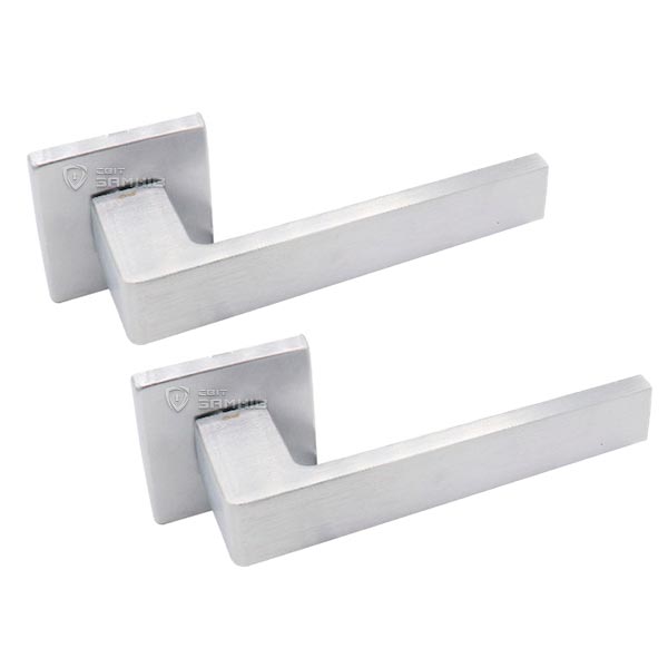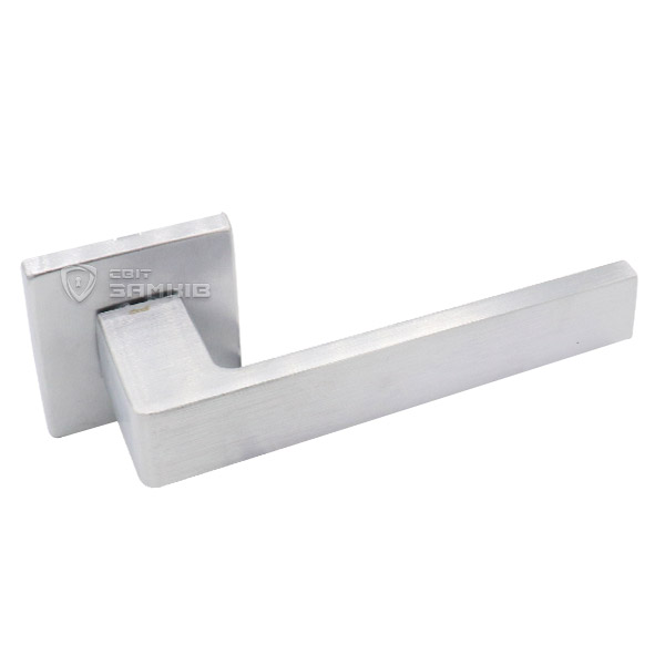 Італійські ручки на розеті DND by MARTINELLI. Ручки цієї торгової марки розробляються в тісній співпраці з відомими італійськими дизайнерами в сфері дверної фурнітури. Матеріал виготовлення – цинковий сплав, що дає змогу встановлювати їх і на міжкімнатні, і на вхідні двері. Популярний колір – матовий хром – чудово буде виглядати в приміщені чи кімнаті в сірих тонах. Захист кольорового відтінку від пошкоджень та подряпин забезпечує спеціальний метод багатошарового гальванічного покриття. Завдяки цьому ручки будуть виглядати як нові протягом 60 місяців. Ручки можна встановлювати як на праві так і на ліві двері. Сучасний дизайн в стилі хай-тек чудово підійде для дверного полотна з суворими гострими лініями.