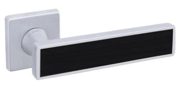 Італійські ручки на розеті DND by MARTINELLI. Ручки цієї торгової марки розробляються в тісній співпраці з відомими італійськими дизайнерами в сфері дверної фурнітури. Матеріал виготовлення – цинковий сплав, що дає змогу встановлювати їх і на міжкімнатні, і на вхідні двері. Популярний колір – матовий хром – чудово буде виглядати в приміщені чи кімнаті в сірих тонах. Додатково в цієї моделі є можливість встановити вставку чорного кольору, яка додасть Вашому інтер’єру трохи темних відтінків. Захист кольорового відтінку від пошкоджень та подряпин забезпечує спеціальний метод багатошарового гальванічного покриття. Завдяки цьому ручки будуть виглядати як нові протягом 60 місяців. Ручки можна встановлювати як на праві так і на ліві двері. Сучасний дизайн в стилі хай-тек чудово підійде для дверного полотна з суворими гострими лініями.