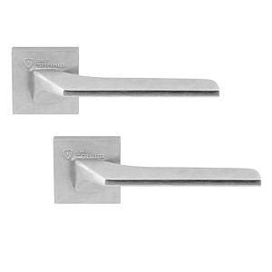 Італійські ручки на розеті популярної торгової марки FIMET. Найкращий вибір для міжкімнатних дверей. Виготовленні з високоякісного латунного сплаву за традиційними італійськими технологіями виробництва. Нажимна частина ручки приємно лягає в руку та зручна у використанні. Завдяки спеціальній двозавитковій пружині ручка не буде провисати. Багатошарове гальванічне покриття забезпечить стійкість кольорового відтінку до стирання та подряпин. Трендовий колір матовий хром чудово підкреслить приміщення з сірими відтінками. Сучасний дизайн в стилі хай-тек буде ідеальним вибором для дверного полотна з прямими лініями.