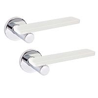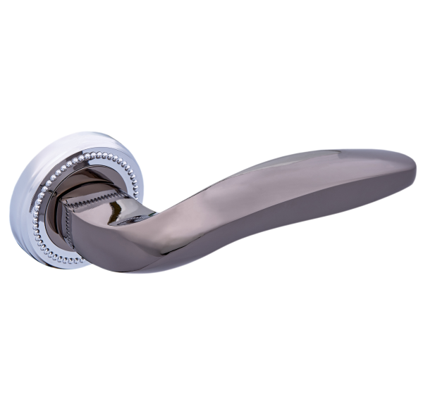 Комплект роздільних ручок французької ТМ "GAVROCHE" - відмінна якість і довговічність роботи. Ручки суцільнолиті, важкі, виготовлені із цинкового сплаву. Кольоровий відтінок наноситься спеціальним методом – гальваніки. Це гарантує термін служби покриття протягом 60 місяців - офіційна гарантія виробника. Зручна форма нажимної частини зробить користування приємним. Особливість цієї моделі - оригінальна розета з "намистинками". Це робить ручку надзвичайно стильною та оригінальною. На дверному полотні виглядає вишукано та елегантно. Комбінування відтінків - хромована розета та чорний нікель нажимної частини - довершить двері в білих або сірих тонах. Якщо у Вас приміщення в стилі модерн - саме ця ручка - прекрасний вибір. В ручках такого типу не видно отворів для кріплення, вони прикриваються зовнішньою кришкою розети. Ручка просто і легко монтується. Залежно від встановленого замка та товщини дверей, ручку можна зафіксувати на стяжні гвинти або саморізи.