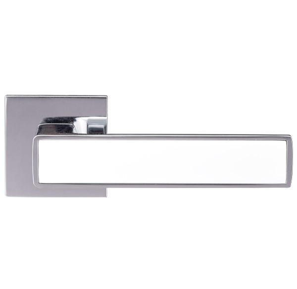 Комплект роздільних ручок французької ТМ "GAVROCHE" - відмінна якість і довговічність роботи. Ручки суцільнолиті, важкі, виготовлені із цинкового сплаву. Кольоровий відтінок наноситься спеціальним методом – гальваніки. Це гарантує термін служби покриття протягом 60 місяців - офіційна гарантія виробника. Зручна форма нажимної частини зробить користування приємним. Родзинка цієї моделі - дуже тонка розета - 5 мм, суцільна, з гострими прямими кутами. Це робить ручку надзвичайно стильною та оригінальною. На дверному полотні виглядає вишукано та елегантно. Вдале поєднання відтінків - блискучий хром і білий - довершить двері в білих тонах. Якщо у Вас приміщення в стилі хай-тек або модер - саме ця ручка - прекрасний вибір. В ручках такого типу не видно отворів для кріплення, вони прикриваються зовнішньою кришкою розети. Ручка просто і легко монтується. Залежно від встановленого замка та товщини дверей, ручку можна зафіксувати на стяжні гвинти або саморізи.