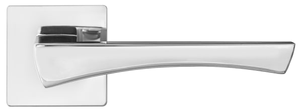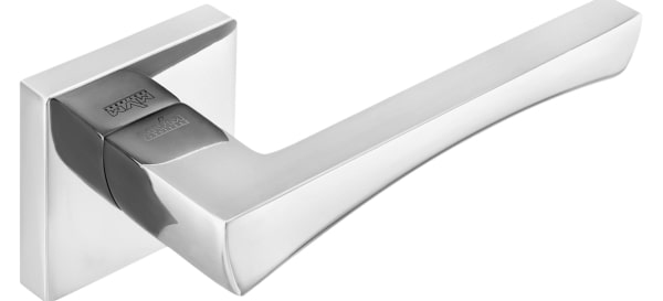 Ручки на розеті торгової марки MVM. Ця модель представляє собою надійну та якісну фурнітуру за прийнятну ціну. Матеріал виготовлення – цинковий сплав. Нажимна частина зручна та приємна на дотик, завдяки чому користування буде приносити лише задоволення. Кольоровий відтінок наноситься спеціальним методом гальваніки, що гарантує термін служби покриття близько 60 місяців. Така модель чудово підкреслить дверні полотна з прямими лініями. Колір цієї моделі полірований хром, прекрасно поєднується з світлим інтер’єром. Ручки такого типу виглядають естетично, в них не видно отворів для кріплення, вони прикриваються зовнішньою кришкою розети. Дивлячись який встановлено замок та яка товщина дверей, ручку можна зафіксувати на стяжні гвинти або на саморізи.