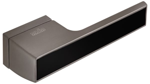 Ручки на розеті торгової марки MVM. Ця модель представляє собою надійну та якісну фурнітуру за прийнятну ціну. Матеріал виготовлення – цинковий сплав. Нажимна частина зручна та приємна на дотик, завдяки чому користування буде приносити лише задоволення. Кольоровий відтінок наноситься спеціальним методом гальваніки, що гарантує термін служби покриття близько 60 місяців. Така модель чудово підкреслить дверні полотна з прямими лініями. Колір моделі – матовий антрацит з чорною вставкою, рекомендовано використовувати з темним інтер’єром. В цієї моделі розета дуже компактна і не привертає до себе лишньої уваги. Дивлячись який встановлено замок та яка товщина дверей, ручку можна зафіксувати на стяжні гвинти або на саморізи.
