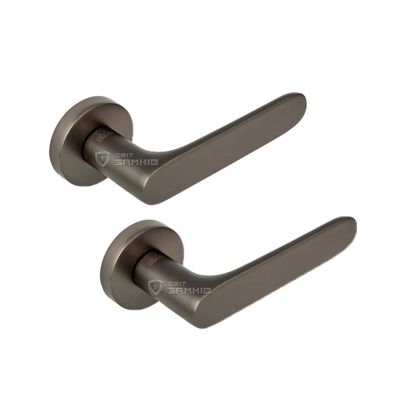 Ручки на розеті торгової марки MVM. Ця модель представляє собою надійну та якісну фурнітуру за прийнятну ціну. Матеріал виготовлення – цинковий сплав. Нажимна частина зручна та приємна на дотик, завдяки чому користування буде приносити лише задоволення. Кольоровий відтінок наноситься спеціальним методом гальваніки, що гарантує термін служби покриття близько 60 місяців. Така модель чудово підкреслить дверні полотна з прямими лініями. Колір цієї моделі матовий антрацит, доречно буде виглядати в інтер’єрі з темними тонами. Ручки такого типу виглядають естетично, в них не видно отворів для кріплення, вони прикриваються зовнішньою кришкою розети. Дивлячись який встановлено замок та яка товщина дверей, ручку можна зафіксувати на стяжні гвинти або на саморізи.