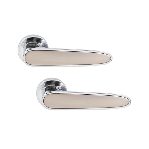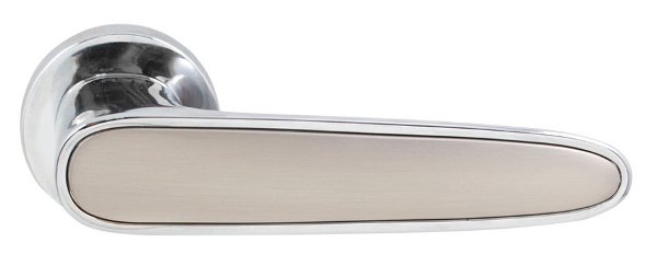 Ручки на розеті торгової марки RDA. Матеріал виготовлення – цинковий сплав, що дозволяє обирати їх як для міжкімнатних так і для вхідних дверей. Багатошарове гальванічне покриття гарантує збереження зовнішнього вигляду ручки до 60 місяців. Додатково металевий пружинний механізм забезпечує легкість натискання ручки та відсутність проблем з її провисанням. Незвичайне поєднання кольорів - хром / сатин нікель – доречно підкреслить інтер'єр в ніжних світлих відтінках. Монтаж ручки простий і не потребує додаткових зусиль. На дверному полотні мають охайний та естетично привабливий вигляд. Дизайн в стилі модерн з круглою розетою, чудово підкреслить Ваш інтер’єр з плавним лініями. Щоб ручки не зламалась при щоденному користуванні радимо зафіксувати їх до стержня гужоном, що йде в комплекті.