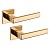 Ручки на розеті португальського виробництва TUPAI. Дверна фурнітура зроблена з урахуванням екологічних європейських стандартів. Виготовляється із латуні за сучасними технологіями на фабриці в Португалії. Золото поліроване – це яскравий колір, який чудово доповнить інтер’єр із золотими елементами та наповнить приміщення світлими відтінками. Покриття наноситься спеціальним методом гальваніки у декілька шарів. Завдяки цьому ручки виглядатимуть як нові до 24 місяців. Додатково це забезпечує стійкість кольору до пошкодження та подряпин. Такі ручки мають тонку розету всього 5 мм, за рахунок чого на дверному полотні вони виглядають охайно та естетично привабливо. Вони виконані в сучасному стилі хай-тек, який можна поєднувати з дверима в мінімалістичному дизайні або з суворими прямими лініями.