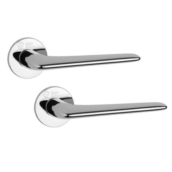 Ручки на розеті португальського виробництва TUPAI. Дверна фурнітура зроблена з урахуванням екологічних європейських стандартів. Виготовляється із латуні за сучасними технологіями на фабриці в Португалії. Яскравий колір – хром полірований – наповнить інтер’єр Вашого приміщення світлими відтінками. Покриття наноситься спеціальним методом гальваніки у декілька шарів. Завдяки цьому ручки виглядатимуть як нові до 24 місяців. Додатково це забезпечує стійкість кольору до пошкодження та подряпин. Ця модель має тонку розету, всього 5 мм, завдяки чому виглядає охайно та естетично привабливо на дверному полотні. Дизайн цієї ручки в стилі модерн чудово доповнить інтер’єр із сучасними гострими лініями.