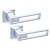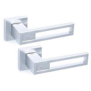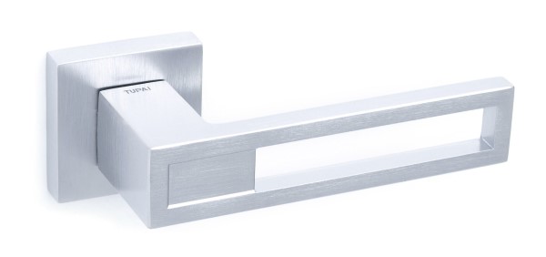 Ручки на розеті португальського виробництва TUPAI. Дверна фурнітура зроблена з урахуванням екологічних європейських стандартів. Матеріал виготовлення – цинк-алюмінієвий сплав. Нажимна частина має подвійну металеву пружину, завдяки чому ручка не буде провисати. Сучасний колір – хром матовий – вдалий вибір для приміщення в спокійних сірих тонах. Покриття наноситься спеціальним методом гальваніки у декілька шарів. Завдяки цьому ручки виглядатимуть як нові до 24 місяців. Додатково це забезпечує стійкість кольору до пошкодження та подряпин. Оригінальний дизайн в стилі хай-тек чудово доповнить дверне полотно з гострими лініями.