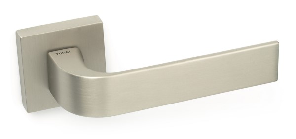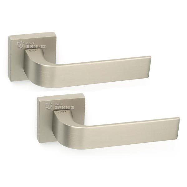 Ручки на розеті португальського виробництва TUPAI. Дверна фурнітура зроблена з урахуванням екологічних європейських стандартів. Матеріал виготовлення – цинк-алюмінієвий сплав. Нажимна частина має подвійну металеву пружину, завдяки чому ручка не буде провисати. Популярний колір – нікель матовий – чудово буде виглядати в кімнаті або офісному приміщені в ніжних світлих відтінках. Покриття наноситься спеціальним методом гальваніки у декілька шарів. Завдяки цьому ручки виглядатимуть як нові до 24 місяців. Додатково це забезпечує стійкість кольору до пошкодження та подряпин. Оригінальний дизайн в стилі хай-тек чудово доповнить дверне полотно з гострими лініями.