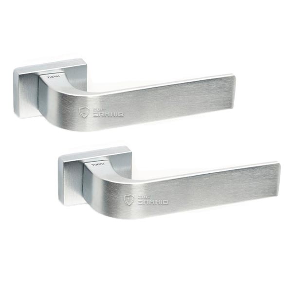 Ручки на розеті португальського виробництва TUPAI. Дверна фурнітура зроблена з урахуванням екологічних європейських стандартів. Матеріал виготовлення – цинк-алюмінієвий сплав. Нажимна частина має подвійну металеву пружину, завдяки чому ручка не буде провисати. Сучасний колір – хром матовий – вдалий вибір для приміщення в спокійних сірих тонах. Покриття наноситься спеціальним методом гальваніки у декілька шарів. Завдяки цьому ручки виглядатимуть як нові до 24 місяців. Прямокутна форма розети в стилі хай-тек чудово підійде для інтер’єру з сучасними гострими деталями.