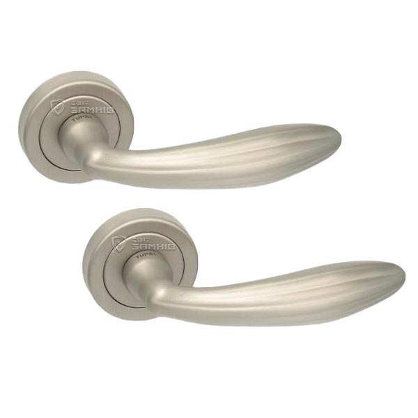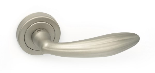 Ручки на розеті португальського виробництва TUPAI. Дверна фурнітура зроблена з урахуванням екологічних європейських стандартів. Виготовляється із латуні за сучасними технологіями на фабриці в Португалії. Популярний колір – нікель матовий – чудово буде виглядати в кімнаті або офісному приміщені з ніжними світлими відтінками. Покриття наноситься спеціальним методом гальваніки у декілька шарів. Завдяки цьому ручки виглядатимуть як нові до 24 місяців. Додатково це забезпечує стійкість кольору до пошкодження та подряпин. Також нажимна частина має подвійну металеву пружину, завдяки чому ручка не буде провисати. Вишуканий класичний дизайн ручки чудово доповнить дверне полотно з плавними лініями.