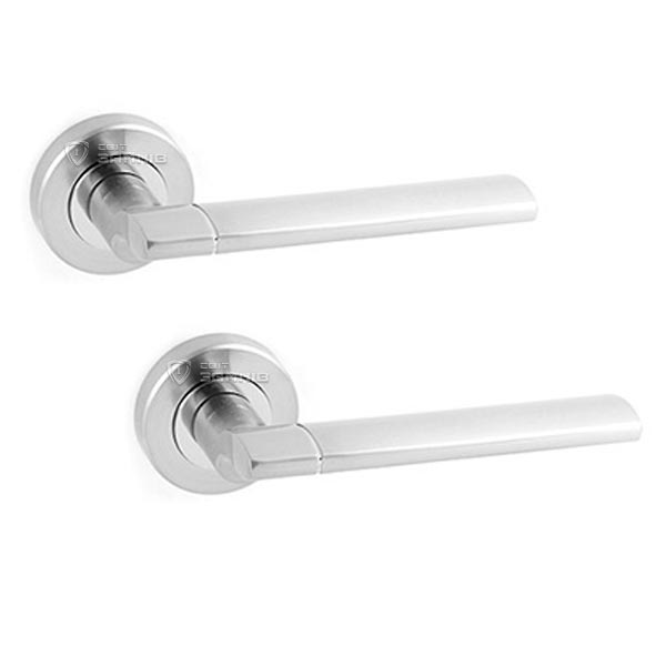 Ручки на круглій розеті торгової марки APECS зацікавлять насамперед того, хто хоче оригінальним чином за помірну ціну завершити дизайн свого помешкання. Чи не найкращим варіантом для приміщень з класичним чи модерновим інтер’єром будуть ручки в кольорі “хром матовий”, які гарно доповнять вхідні чи міжкімнатні двері із глянцевим покриттям, скляними вставками та царгами. Товщина полотна від 30 мм. Зручна форма нажимної частини зробить користування приємним. Виготовлені із міцного цинкового сплаву. Для захисту від зносу захищені гальванічним покриттям, що збереже їх зовнішній вигляд до 60 місяців. За потреби окремо можна підібрати вороток або накладки на серцевину у відповідному кольорі.