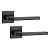 APRILE AS Ismena Q 7S – це ручки на квадратній розеті. Виготовляються із цинкового сплаву ZAMAK. Завдяки цьому є достатньо міцними. Строгий сучасний хай-тек дизайн з прямими лініями в трендовому чорному кольорі відмінно завершить продуманий стиль ваших дверей в подібних темних відтінках.