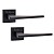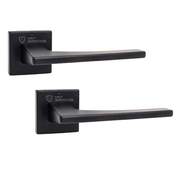 Грецькі ручки на розеті CONVEX. Підбираючи ручку важливо враховувати те з чого вона зроблена. Ця модель виготовлена із цинк-алюмінієвого сплаву. Це матеріал, який характеризується своєю міцністю та надійністю. Не менш важливо як ручка поводить себе у користуванні. Металевий пружинний механізм забезпечить зручне та приємне натискання, додатково він розрахований на понад 200 000 циклів замикання та відкривання. Завдяки цьому у Вас не буде виникати проблем з використанням цих ручок. Покриття наноситься спеціальним методом гальваніки у декілька шарів, що забезпечує стійкість кольорового відтінку до стирання протягом 60 місяців. Чорний матовий – колір, який чудово підкреслить будинок або офісне приміщення в темних тонах. Сучасний дизайн в стилі хай-тек – ідеальний вибір для дверного полотна з прямими лініями, вставками прямокутного скла.