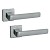 Грецькі ручки на розеті CONVEX. Підбираючи ручку важливо враховувати те з чого вона зроблена. Ця модель виготовлена із цинк-алюмінієвого сплаву. Це матеріал, який характеризується своєю міцністю та надійністю. Не менш важливо як ручка поводить себе у користуванні. Металевий пружинний механізм забезпечить зручне та приємне натискання, додатково він розрахований на понад 200 000 циклів замикання та відкривання. Завдяки цьому у Вас не буде виникати проблем з використанням цих ручок. Покриття наноситься спеціальним методом гальваніки у декілька шарів, що забезпечує стійкість кольорового відтінку до стирання протягом 60 місяців. Популярний колір – матовий хром – чудово буде виглядати в приміщені чи кімнаті в сірих тонах. Сучасний дизайн в стилі хай-тек – ідеальний вибір для дверного полотна з прямими лініями, вставками прямокутного скла.