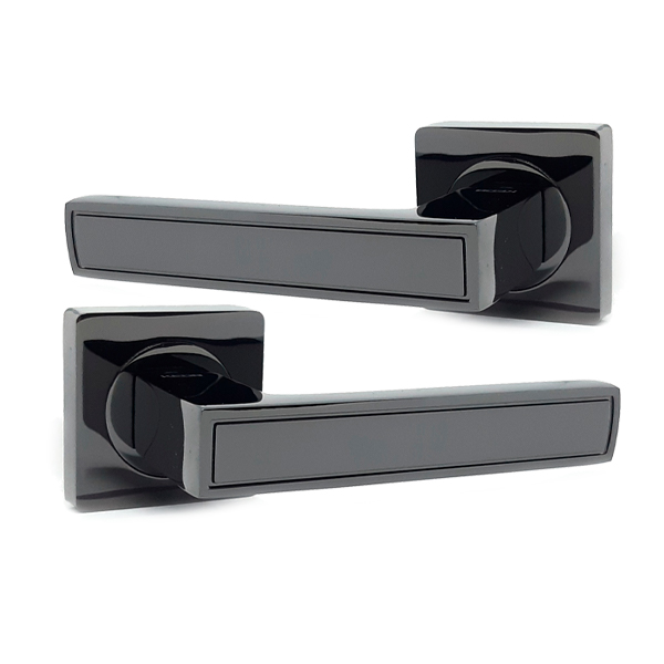 Монтуються такі ручки без особливих труднощів. На дверному полотні мають привабливий та охайний вигляд, оскільки отвори для кріплення приховані зовнішньою кришкою розети. При монтажі варто звертати увагу на «гужон» – це кріпильний елемент ручки до квадрата, який при правильній установці не дасть фурнітурі зламатись довгі роки. У кольорі “чорний нікель” ця модель чудово підкреслить інтер’єр в темних тонах.