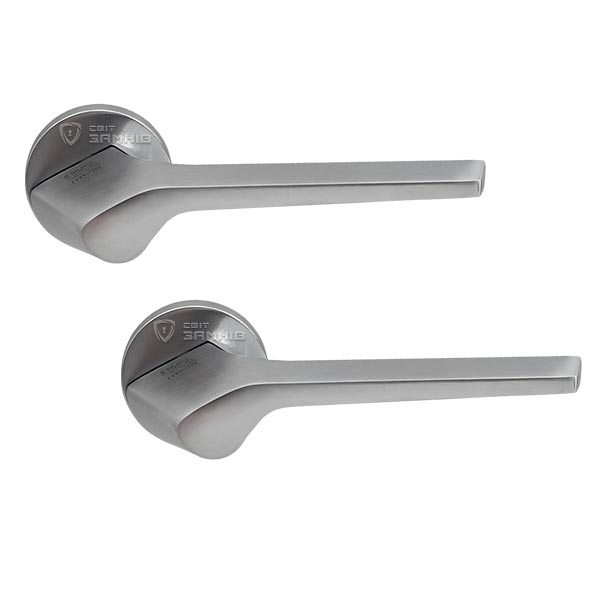 Ручки на розеті торгової марки MVM – представляє собою естетично привабливий товар за приємну ціну. Ця модель виготовлена із алюмінієвого сплаву. Зручна та приємна на дотик ручка, зробить так, що користування не буде приносити дискомфорту. Покриття виконане методом гальваніки, що забезпечить стійкість кольору до стирання протягом 36 місяців. Така модель чудово підкреслить дверні полотна з прямими лініями. Популярний колір – матовий хром – чудово буде виглядати в приміщені чи кімнаті в сірих тонах. Ручки такого типу легко монтуються. В них не видно отворів для кріплення, вони приховані за допомогою зовнішньої кришки розети. В залежності від встановленого замка та товщини дверей, ручку можна зафіксувати на стяжні гвинти або саморізи.