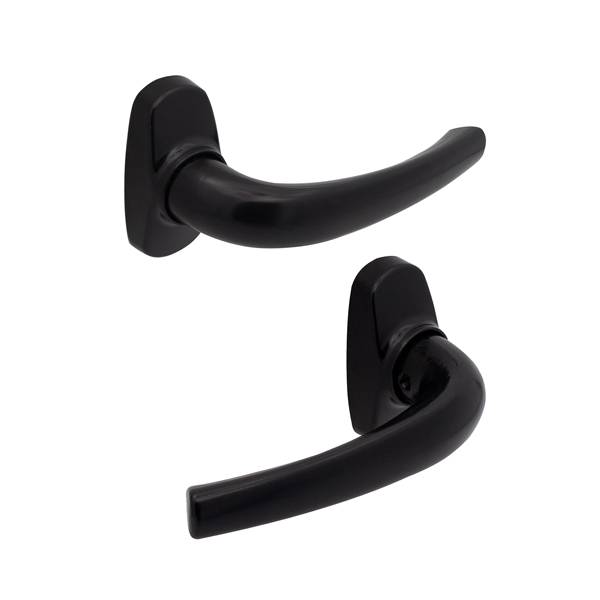 За конструкцією ручки доволі прості та виконані у класичному стилі. Зручна форма буде комфортною у експлуатації. Важливою характеристикою є те, що вони натискаються в обидва боки, як вниз так і догори. Це буде доречно для використання у металопластикових дверях. Покриття ручок виконане гальванічним методом, яке гарантує збереження їхнього зовнішнього вигляду до 60 місяців. В “чорному” кольорі будуть ідеально доповнювати полотна темних відтінків.