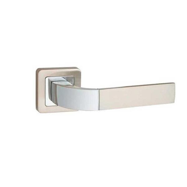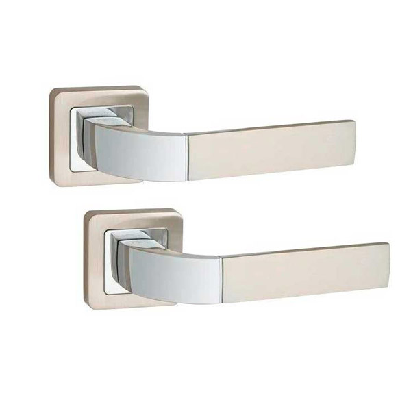 Цікавий дизайн та доступна ціна роблять ручки PUNTO чи не найкращим вибором в своєму ціновому сегменті. Дану модель встановлюють на міжкімнатні та внутрішні вхідні двері. Поєднання кольору “матовий нікель” з хромом ми радимо використовувати в приміщеннях зі світлими або тепло-сірими чи бежевими відтінками. Конструктивно ручки виготовлені із алюмінію. Зручна нажимна частина не буде створювати дискомфорту при роботі. Також гальванічне покриття гарантує збереження їхнього зовнішнього вигляду протягом тривалого часу. Квадратна розета вдало прикриє отвори для кріплення.За потреби додатково можна обрати вороток чи накладки на серцевину в цьому ж кольорі.