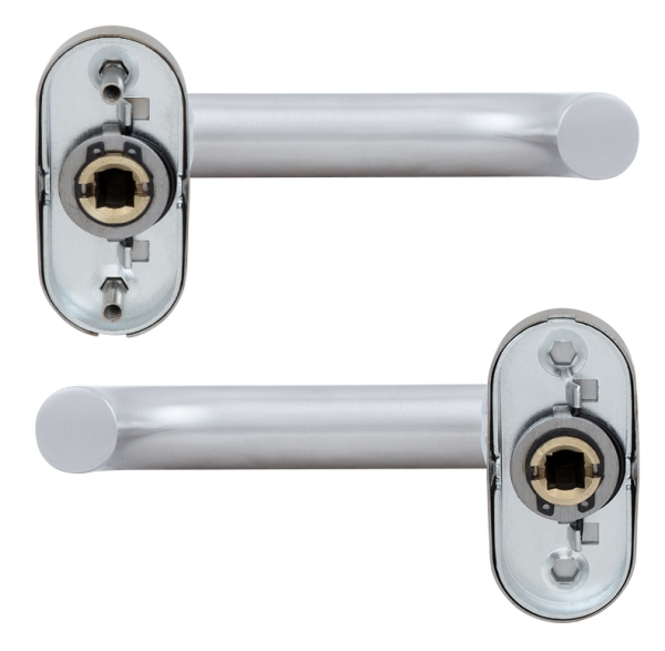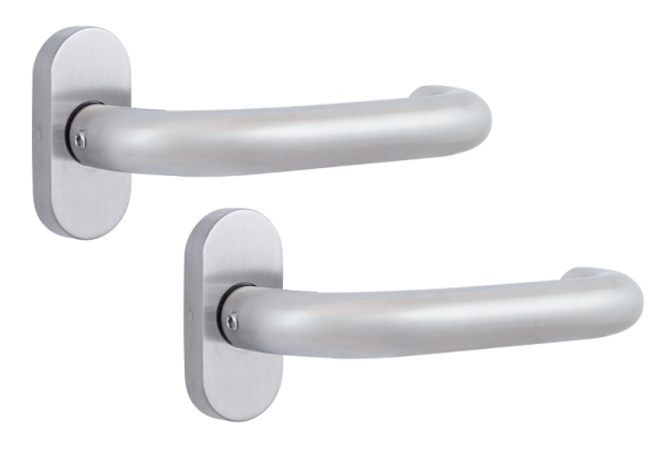 Ручки торгової марки ROSTEX славляться на ринку особливою якістю матеріалів, що дозволяють їм працювати максимально довгий час. Дана модель має овальну розету. Це означає, що їх можна встановлювати як в міжкімнатних, так і вхідних пластикових та алюмінієвих дверях приміщень громадського призначення. Також завдяки тому що вони виготовлені з нержавіючою сталі часто їх можна побачити на хвіртках. Заокруглена форма ручок з матовою поверхнею роблять процес відкривання максимально зручним. Колір матової нержавіючої сталі має приємний холодний відтінок, що не привертає зайвої уваги. Ручки довговічні завдяки спеціальній поворотній пружині. В монтажі дана модель зручна.