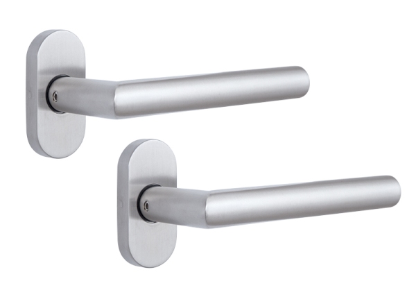Ручки торгової марки ROSTEX славляться на ринку особливою якістю матеріалів, що дозволяють їм працювати максимально довгий час. Дана модель має овальну розету. Це означає, що їх можна встановлювати як в міжкімнатних, так і вхідних пластикових та алюмінієвих дверях приміщень громадського призначення. Також завдяки тому що вони виготовлені з нержавіючою сталі часто їх можна побачити на хвіртках. Заокруглена форма ручок з матовою поверхнею роблять процес відкривання максимально зручним. Колір матової нержавіючої сталі має приємний холодний відтінок, що не привертає зайвої уваги. Ручки довговічні завдяки спеціальній поворотній пружині. В монтажі дана модель зручна.
