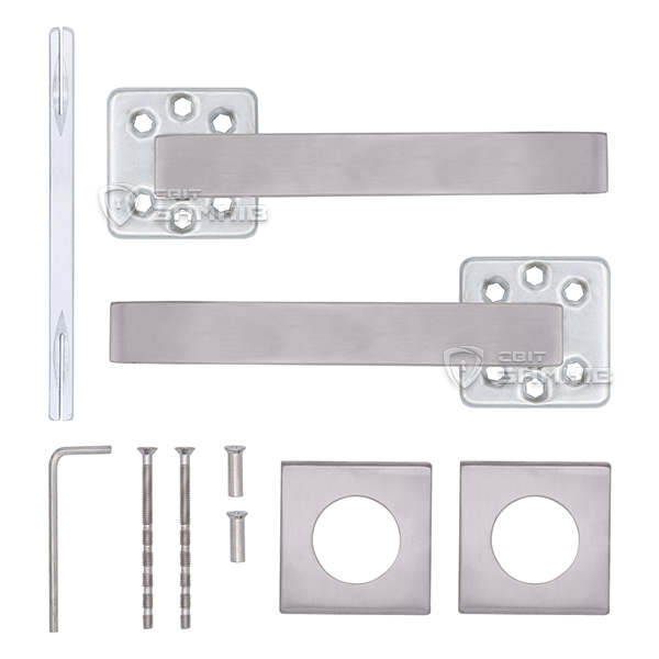SHERLOCK SH 2033 – це ручки на квадратній розеті, які обирають насамперед для дверей в приміщеннях приватного та громадського призначення. Конструктивно виконані із нержавіючої сталі, що дає можливість їх використання при різних погодних умовах. Завдяки цьому їх можна встановлювати їх не тільки на міжкімнатні чи вхідні двері, а й на вуличні.