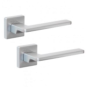 Ручки на розеті турецького виробництва SYSTEM. Виготовляються із міцного цинкового сплаву. Ці ручки суцільнолиті та масивні, завдяки чому вони не зламаються. Надійний металевий пружинний механізм забезпечує зручність натискання та відсутність проблем з провисанням ручки. Популярний колір – матовий хром – чудово буде виглядати в приміщені чи кімнаті в сірих тонах. В результаті багатошарового гальванічного покриття, зовнішній вигляд ручки буде збережено до 60 місяців. Такі ручки універсальні – встановлюються як на праві так і на ліві двері. Дизайн розроблений в сучасному стилі хай-тек, ідеальний вибір для дверного полотна з прямими лініями, вставками прямокутного скла.