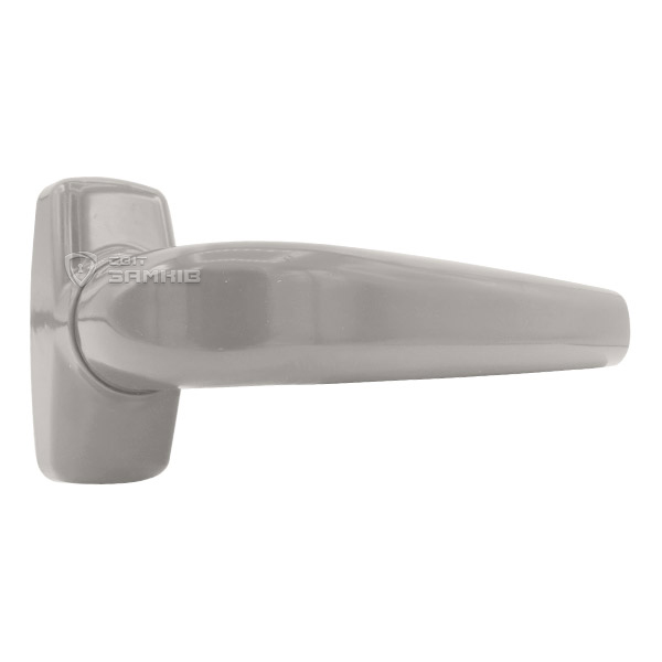 Польські ручки на розеті MEDOS Merkury. Призначенні для використання на хвіртках, вхідних металопластикових або алюмінієвих дверях. Матеріал виготовлення – алюмінієвий сплав. Колір цієї моделі сірий, добре поєднується з інтер’єром в світлих відтінках. Особливістю ручки є те, що з одного боку ручка нажимна, а з іншого фіксована. Завдяки цьому їх можна використовувати в приміщеннях де потрібно обмежити доступ ззовні, або разом із домофонними системами / контролями доступу.