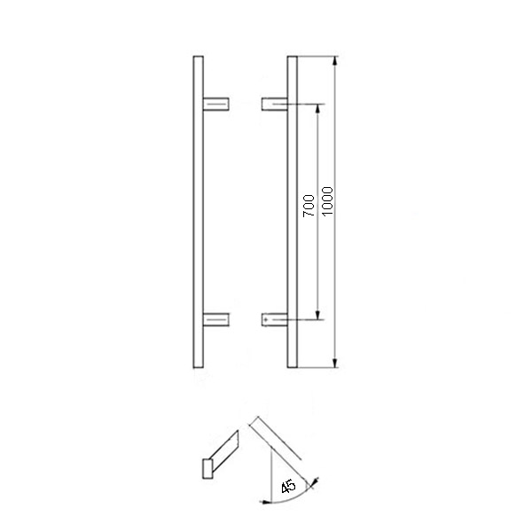 • Кут кріплення ручки відносно площини дверей - 45°.